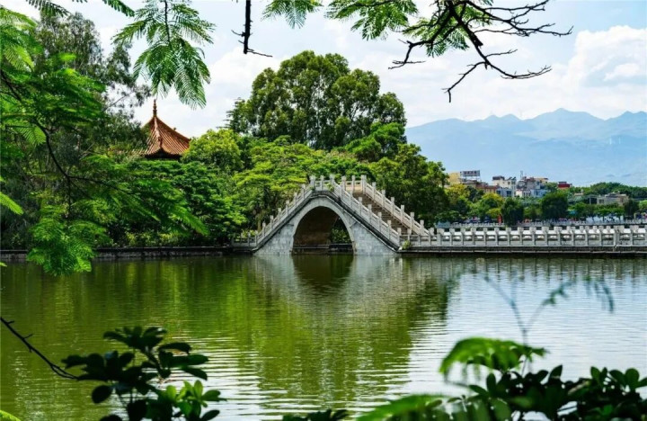 有人说,一个小城只要有一个静谧干净的湖,宜居的分数就能加上10分。蒙自的南湖公园就是这样一个地方。这里是明代开掘的人工湖,至今已有几百年历史。