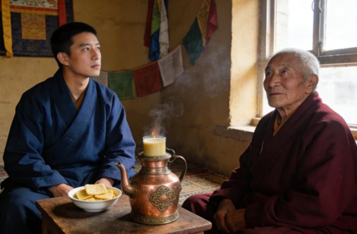 这七天,我跟着扎西师父一起打扫院子,一起喝酥油茶,一起看日出日落。他给我讲格莫活佛的故事,讲这座寺庙里来来往往的人,讲那些在黑暗里找到光的人。