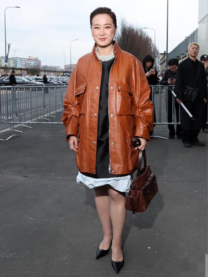 在G社镜头下,贾玲身穿驼色风衣外套,里搭黑色的无袖短裙,小秀美腿,脚踩黑色的露跟高跟鞋拉长了视觉,手上拎着深咖色复古手提袋,头发盘起,整体造型干练利索。