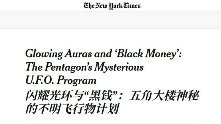 尔后,民间流传称,自 1933 年以来,好意思国政府一直机密开展着一项名为“遗产野心”的形式,对非东谈主类翱游器进行回收和逆向工程。2017 年 12 月 16 日,《纽约时报》在头版发表重磅报谈,将一个此前皆备守秘的五角大楼形式——先进航空阻抑识别野心(AATIP)推到公众视线。