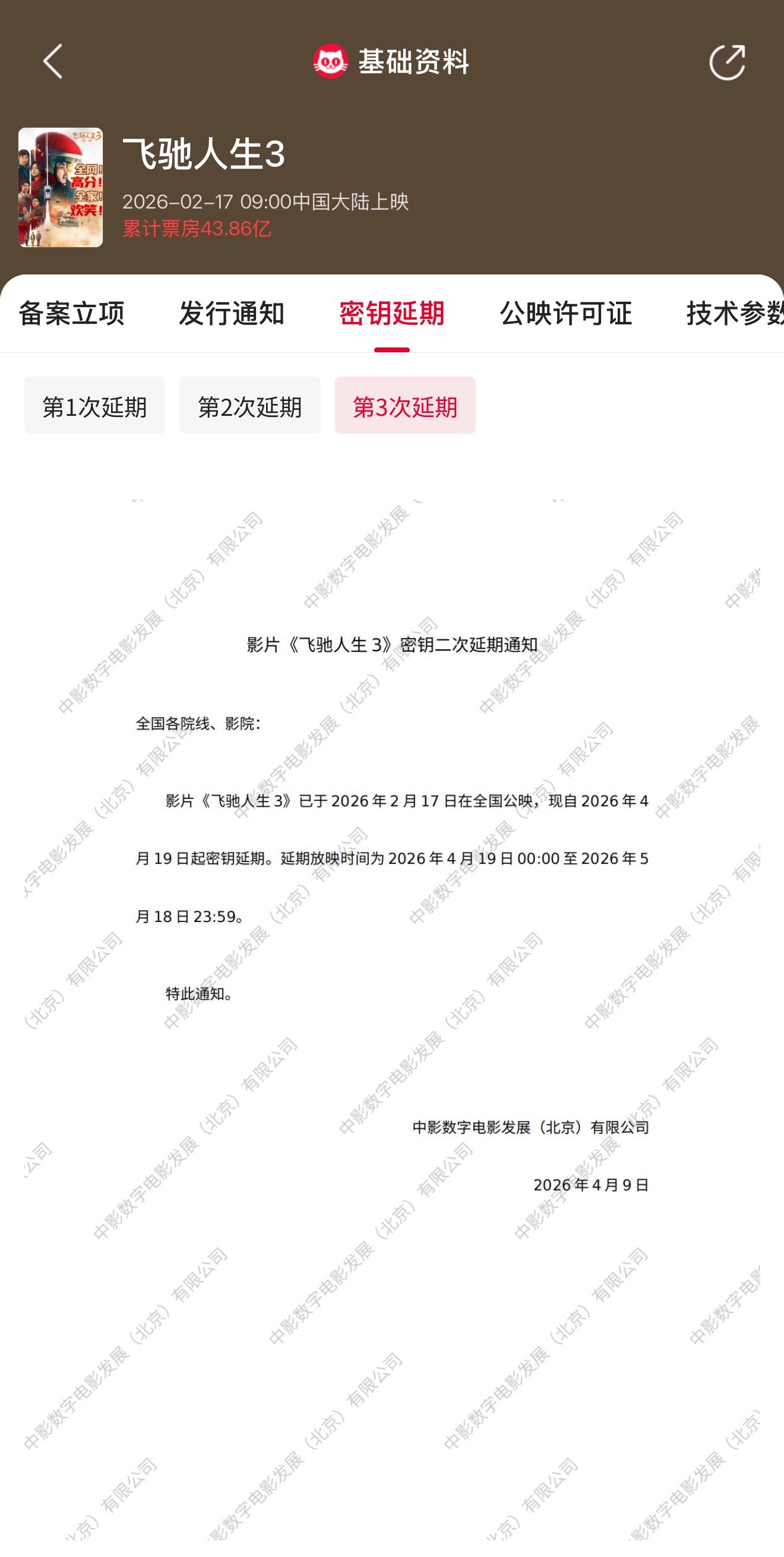 26、累计票房超 43.86 亿:韩寒赛车电影《飞驰东谈主生 3》密钥二次延期,延迟放映至 2026 年 5 月 18 日韩寒赛车电影《飞驰东谈主生 3》官宣密钥延期,延迟上映至 2026 年 5 月 18 日,据猫眼专科版数据,死心面前累计票房已超 43.86 亿。