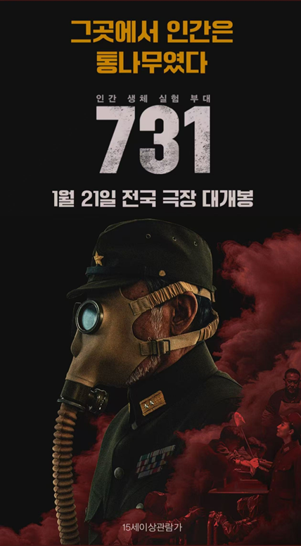 1月21日,中国电影《731》在韩国各大院线同时上映。《731》记录了日本军国主义侵略者彻底践踏人类尊严的反人类暴行,揭露了侵华日军731部队强迫中国、韩国等亚洲国家无辜平民充当实验对象,视鲜活生命为随意切割的实验耗材的历史罪行。