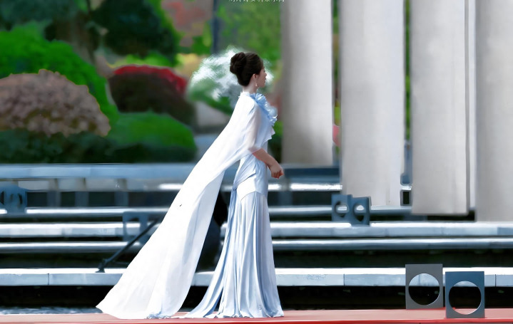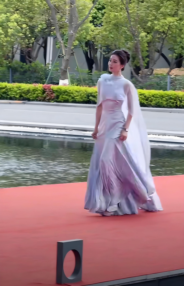 这款Self-Portrait相称定制纱裙,以清透薄纱为料,缀以清雅刺绣,渐变裙摆渺小如春日流云。站在舞台上的她,恰似从江南春卷中走出的佳东谈主,直快温婉的气质与周遭春日氛围无缺长入,被网友盛赞“把晴空穿在了身上”。