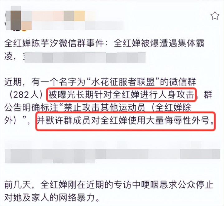 有东谈主在巧妙微信群里,对她进行了长达数月的捏续性东谈主身袭击。