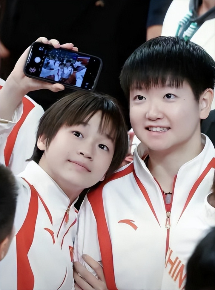 郭晶晶拿入部属手机,像个小迷妹一样追着全红婵拍照。