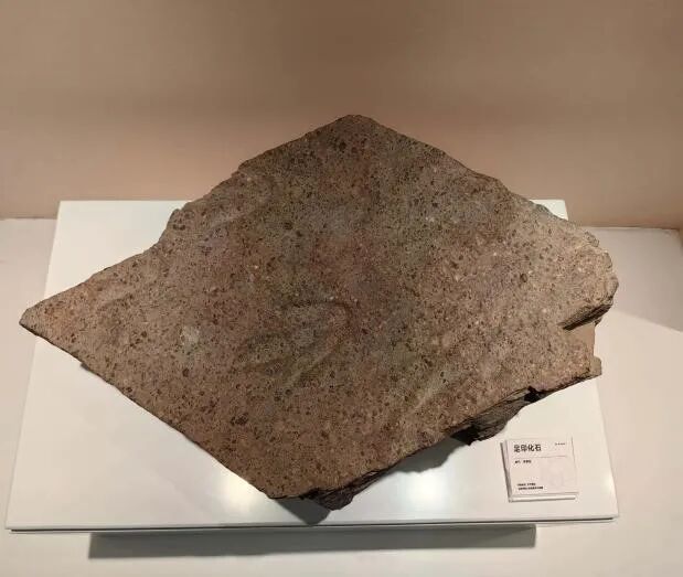 20世纪70年代北京师范大学师生在辽宁朝阳地区采集到一枚珍贵的恐龙足印,这是比较少见的完整的清晰的恐龙足印,具有极高的科学价值(下方右图,现放置于地质标本馆珍藏区)。