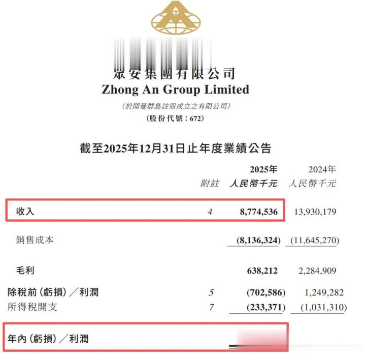 3月26日,浙江众安集团发布驱逐2025年12月31日止年度功绩公告: 1、2025年度空洞收入约为87.75亿元,较2024年度减少约37%; 2、2025年毛利约为6.38亿元,较2024年度减少约72.1%; 3、2025年度录得亏蚀约9.36亿元,2024年录得盈利约2.18亿元。 在昨年3月27日之际,浙江众安集团相同发布了畴昔的年度论说:2024财年,众安末端归拢收入约为东说念主民币139.30亿元;毛利约为东说念主民币22.85亿元,同比增长约49.8%;净利润约为东说念主民币2...